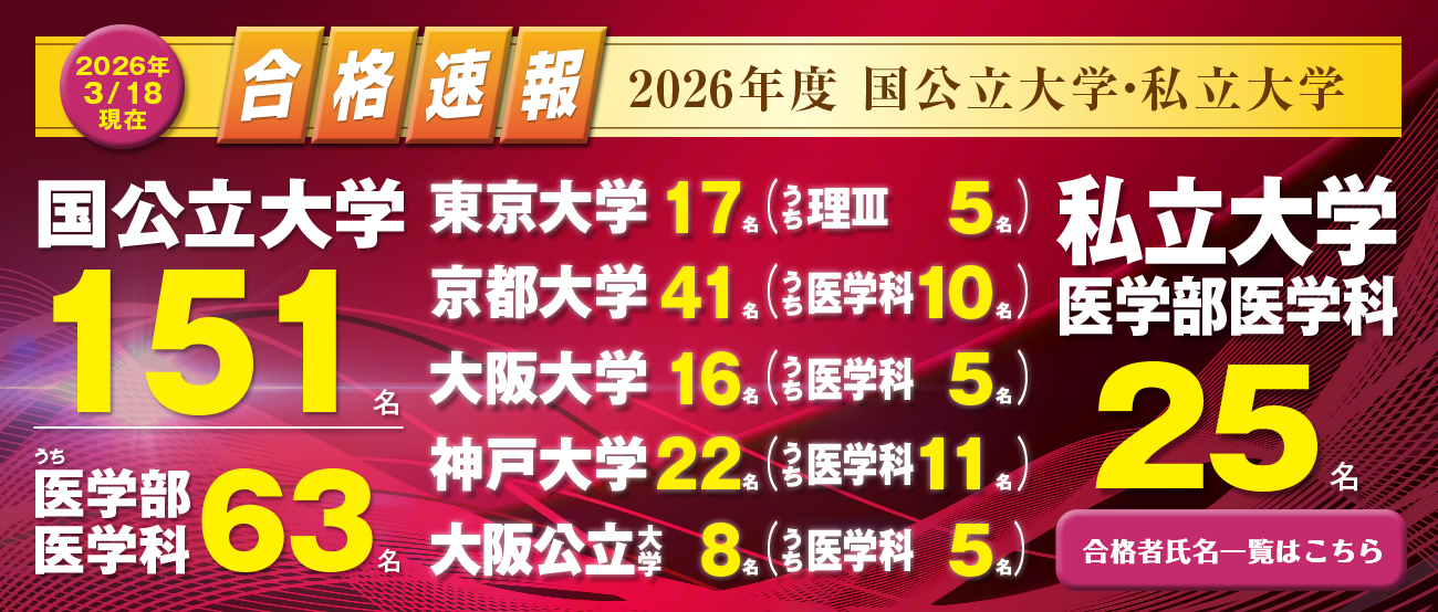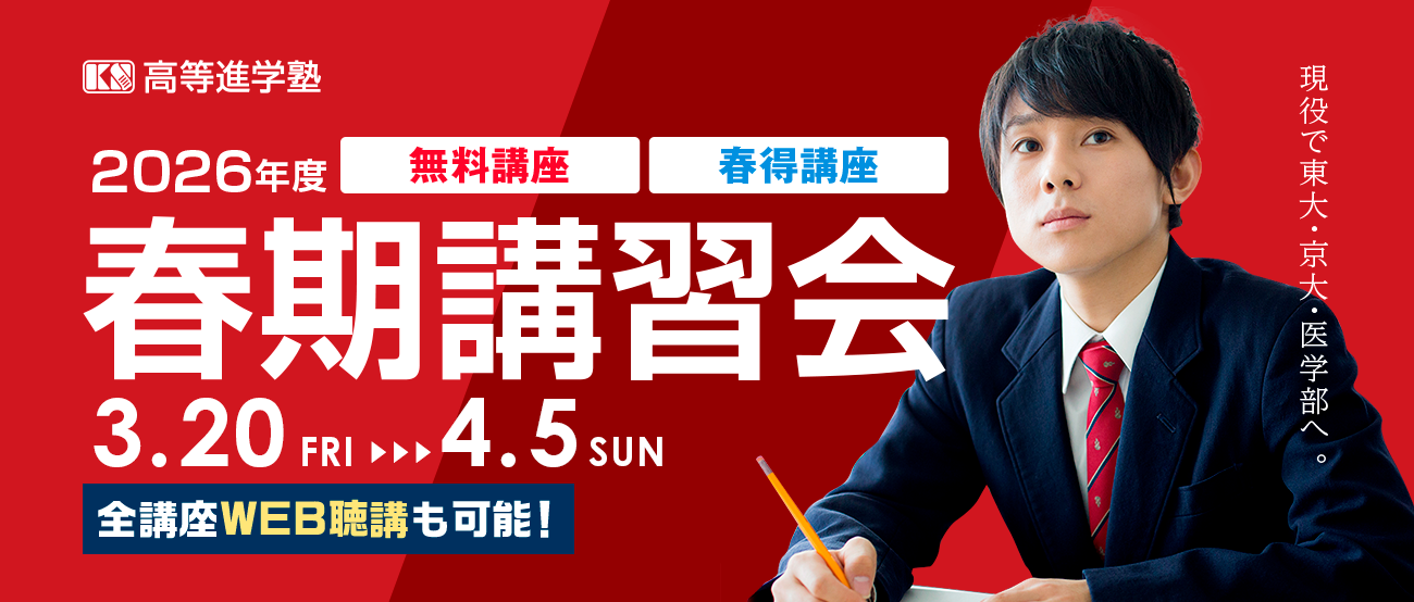 学習システム 東大・京大・医学部受験に特化したカリキュラム、授業システムを私たちは作り上げています。 Movieあり 講師紹介LECTURER 詳しく見る Movieあり 授業システムSYSTEM 詳しく見る ビデオ聴講VODVIDEO LECTURE 詳しく見る 医進個別ZEUSPRIVATE 詳しく見る その他サポートシステムSUPPORT SYSTEM 詳しく見る 校舎案内 「学び」の場であると同時に、「やる気」を生み出す場、それが高等進学塾。 講座・自習室・入塾について 講師の「やる気」と生徒の「やる気」と確かなシステムを以てすれば、必ず学力を伸ばすことができる。 レギュラー講座 オプション講座 年間予定 選抜クラス受講希望の方へ 台風等 緊急時の措置 事務受付時間・自習室利用時間 学費について 採用情報 医進予備校MEDiC